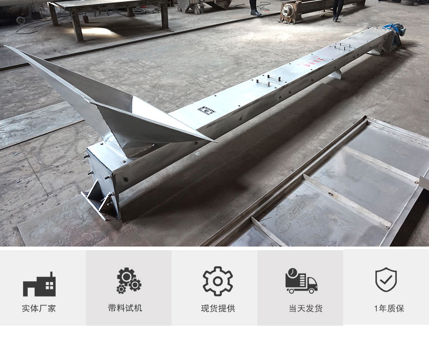 不銹鋼有軸螺旋輸送機:304或316L制成,造價高,不生銹耐腐蝕,耐高溫可達300℃,衛(wèi)生標準高,多用于食品加工廠、醫(yī)藥廠或部分化工廠輸送使用,不對物料造成污染。