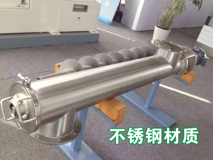 不銹鋼材質(zhì)——不銹鋼的螺旋輸送機(jī)葉片可以輸送酸,堿性以及高溫物料,同時(shí)用也用對(duì)于衛(wèi)生環(huán)境要求高的行業(yè)。